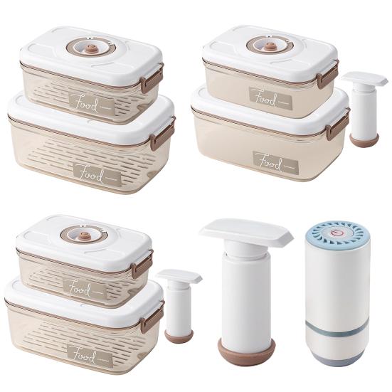 Вакуумный насос, встроенный в каждую крышку, удаляет воздух и герметизирует контейнер, обеспечивая герметичное и герметичное пространство для хранения ваших продуктов..