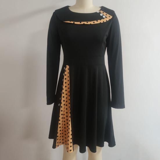 Характеристики: Dot Patchwork Печать, Плиссированный Большой Подол, Пуговицы Декор