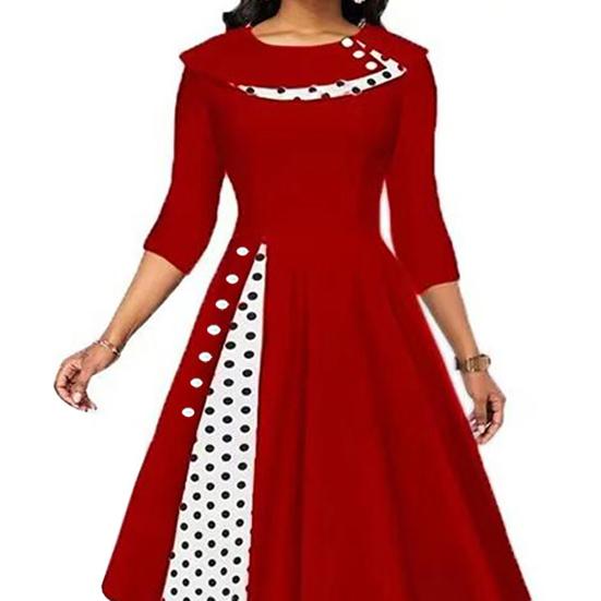 Вы можете носить этот точечный лоскутный принт и платье A-Line с высокими каблуками и модными сумками, которые представят другой и красивый вид.