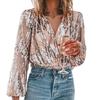 Весенняя блузка с V-образным вырезом и рукавами-фонариками, полиэстер, женская, для