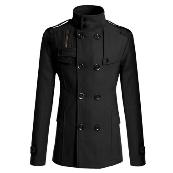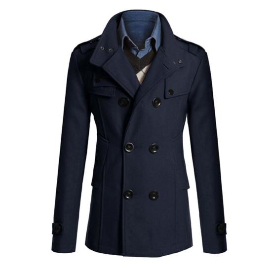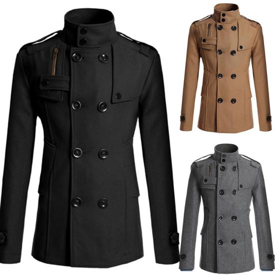 Мужское шерстяное приталенное тренч-пальто с длинными рукавами, лацканами, двубортное, с карманами