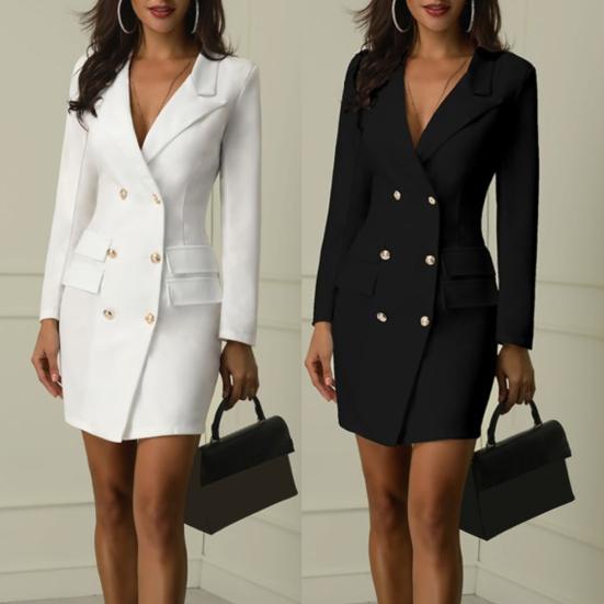 Офисный женский двубортный пиджак с V-образным вырезом и длинными рукавами, облегающее мини-платье