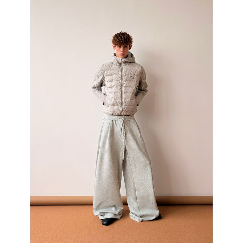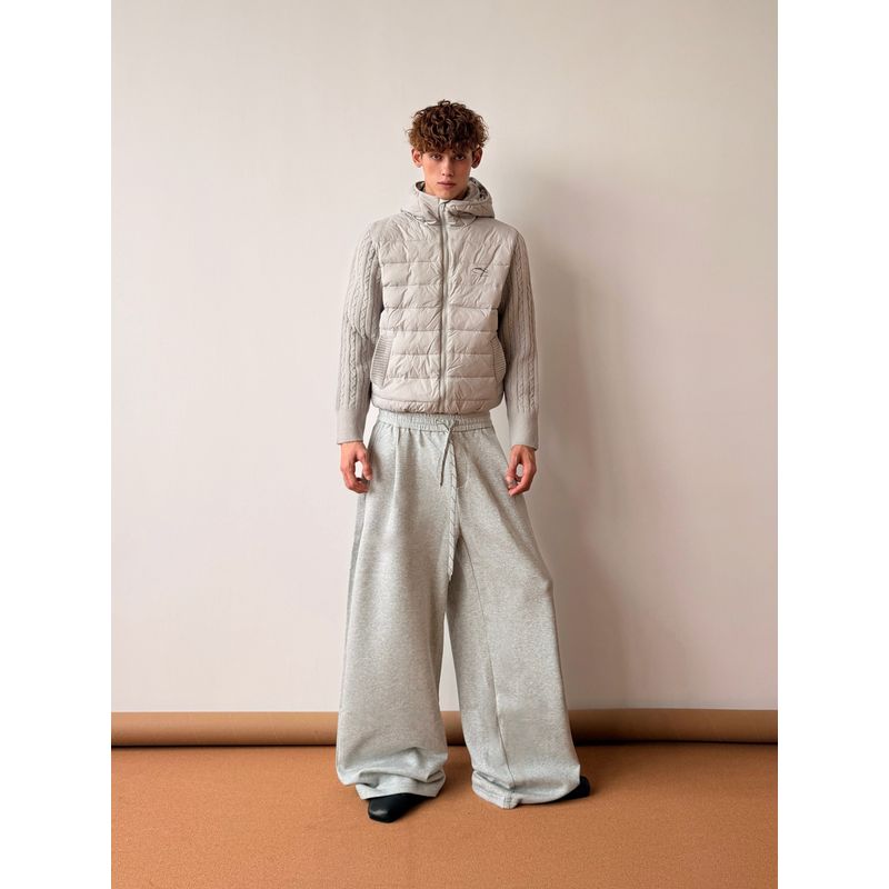 Cabbage Coke American-Style Ribbed 90 White Duck down Jacket Winter Patchwork Knitted Hooded Casual Couple's Coat for Men