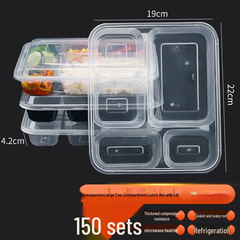 Clear Beauty Disposable 5-Compartment Meal Prep Containers