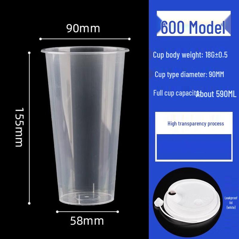 МодельПрозрачный стакан 600 мл с белой крышкой, 500 штук