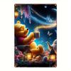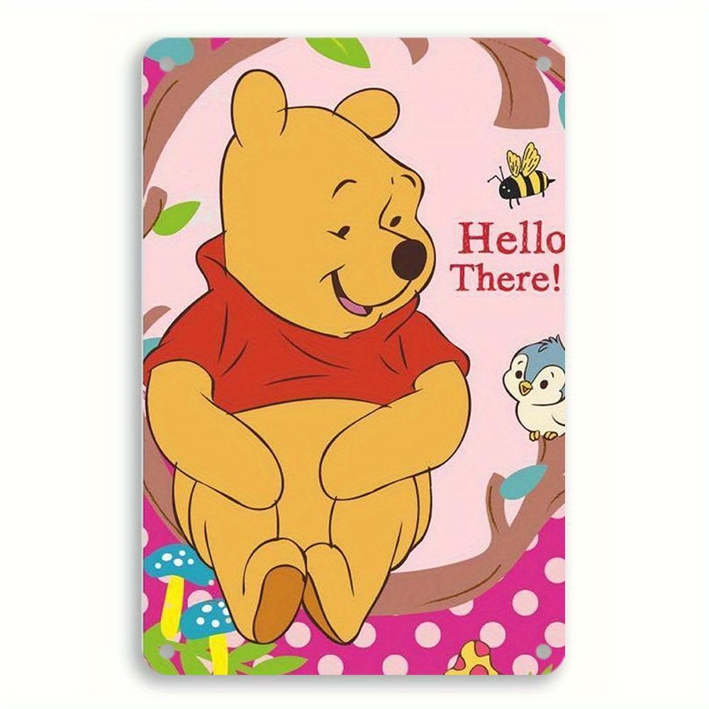 1pc "Hello There!" Metal Tin Sign 8x12 Inch - Vintage Wall Art with Winnie, Piglet, Tigger & Eeyore, Colorful Floral & Polka Dot