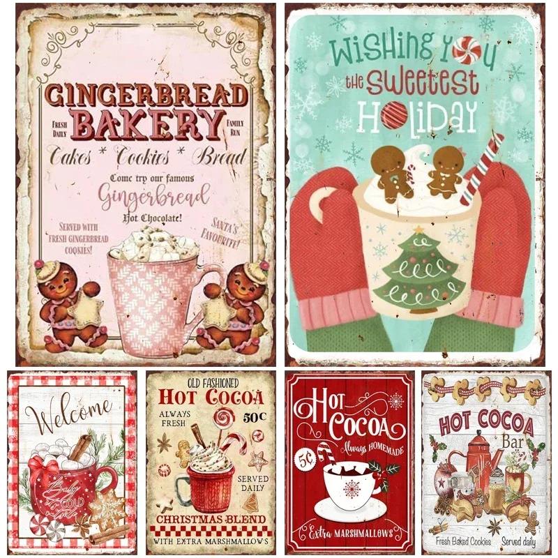 Christmas Hot Drink Metal Tin Sign Bakery Coffee Shop Bar Dessert House Vintage Wall Decor Poster Home Kitchen Decoration Plaque