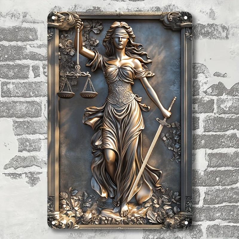 Винтажное алюминиевое настенное украшение: Дизайн Богини Правосудия с Весами Правосудия - Декоративная Металлическая Табличка для Бара, Гостиной — купить товар онлайн с бесплатной доставкой по всему миру!