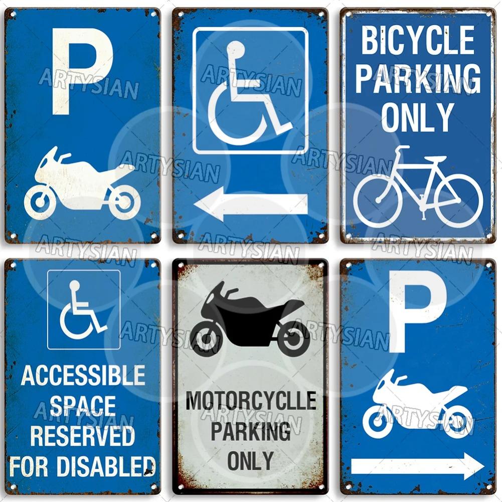 Vintage Parking Metal Sign Bicycle Disabled Motor cycle Parking Retro Metal Plaque Do not Attach Bikes To The Fence