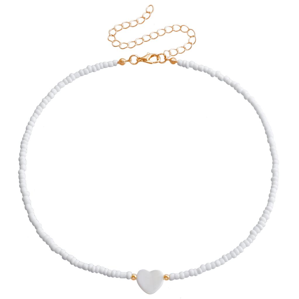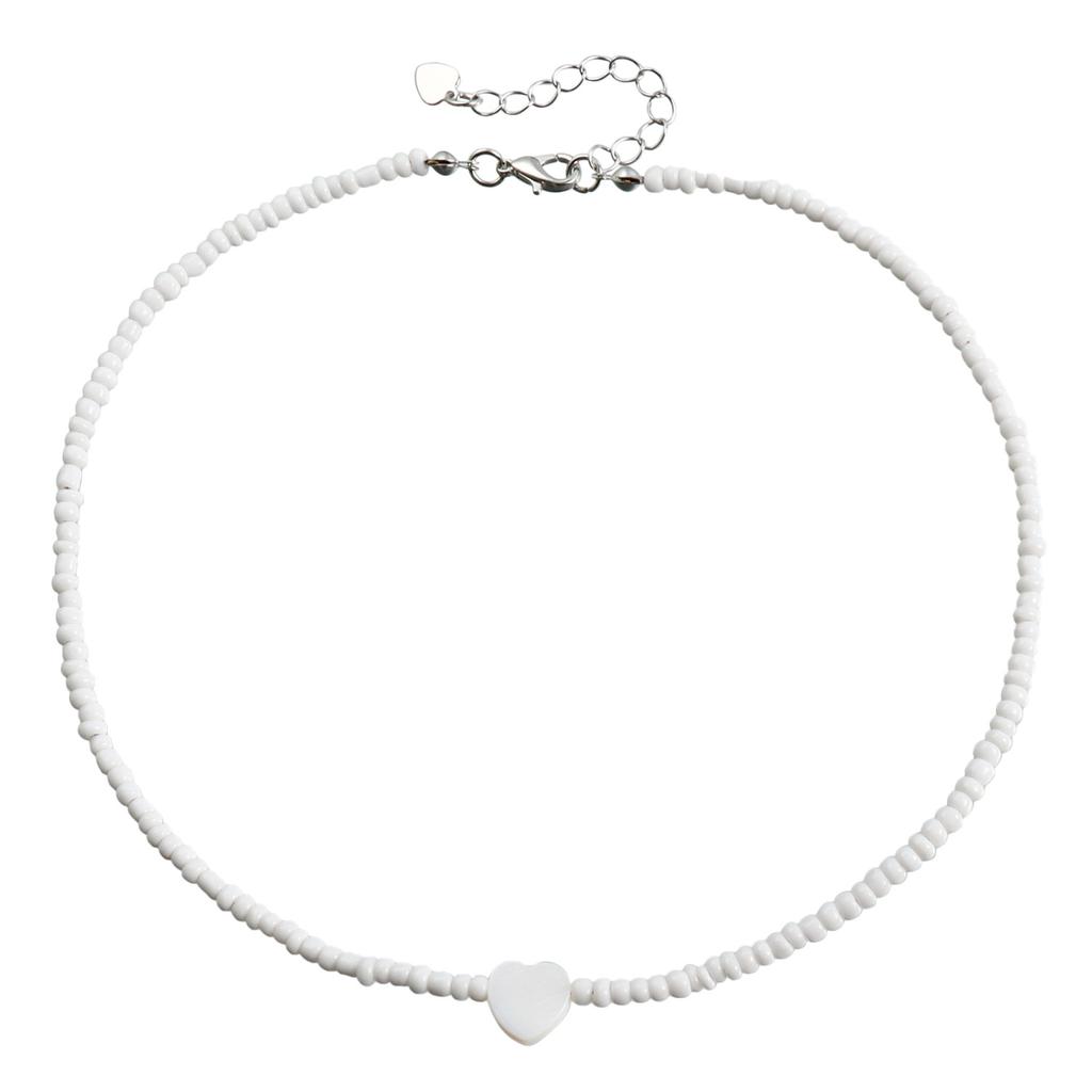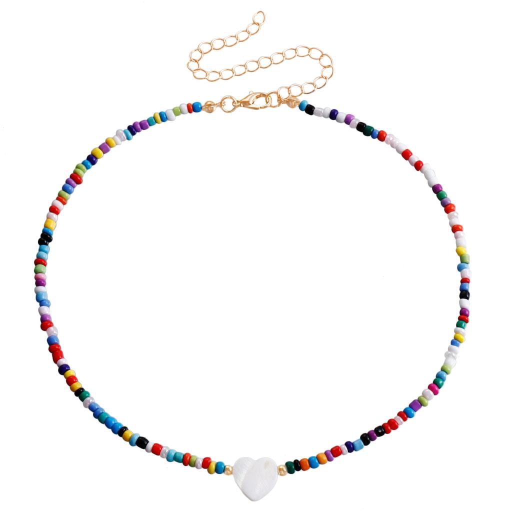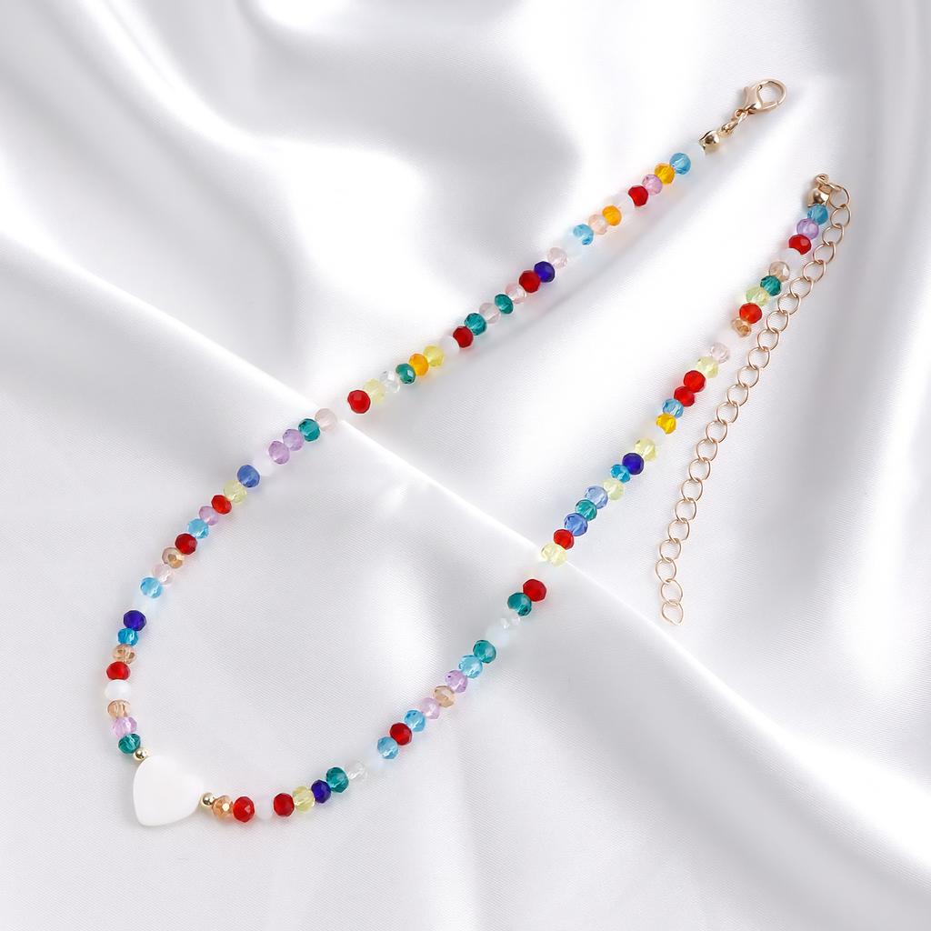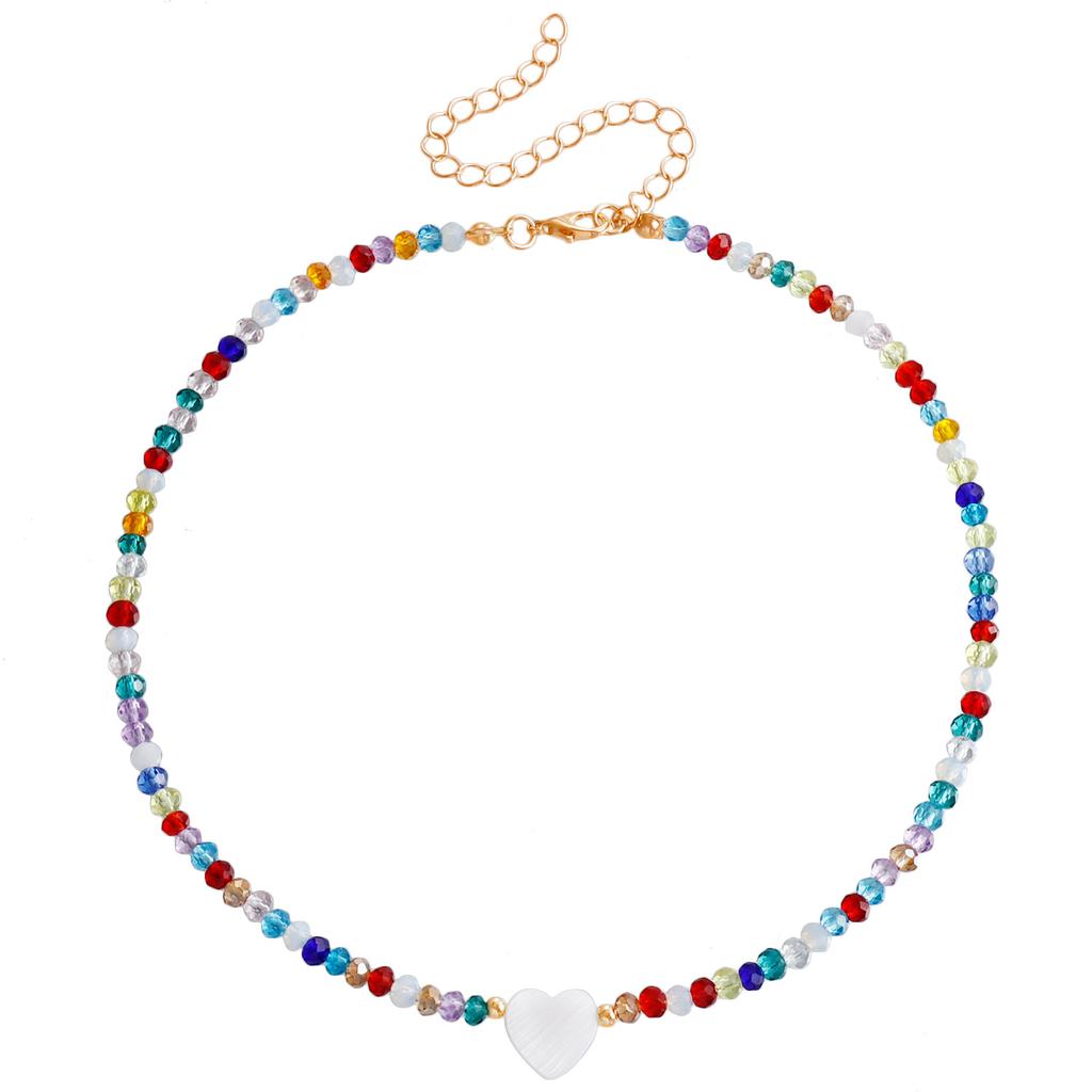 Ожерелье-чокер в виде сердца для девочки, весенне-летняя мода, ожерелье из маленьких разноцветных стеклянных бусин, подарок для подруги