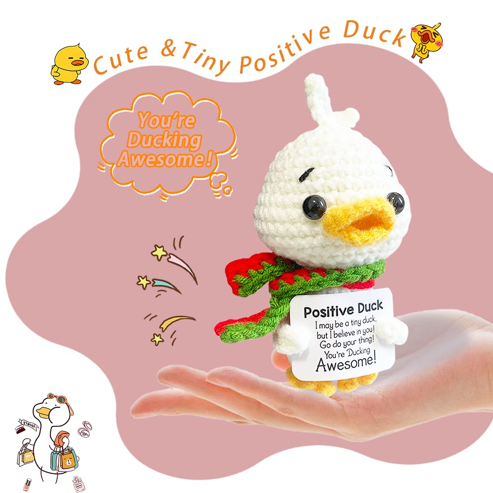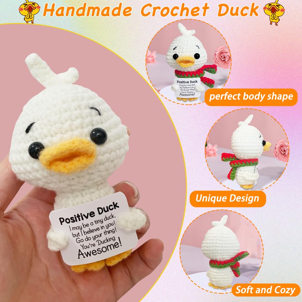 Handmade Knitted Scarf Duck Ornament Home Room Decoration Funny Crochet Emotional Support Duck Doll With Card Christmas Gifts