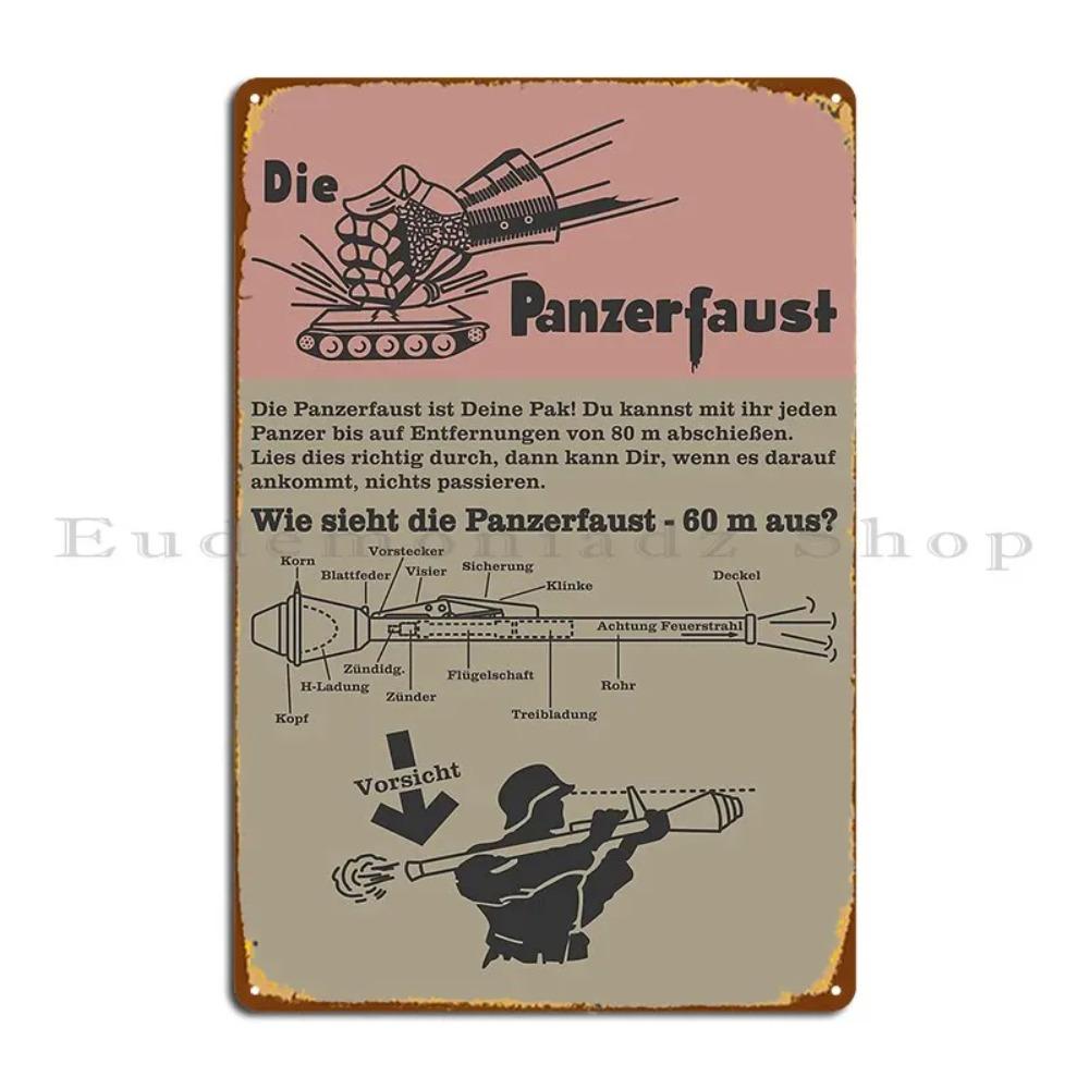 PanzerfaustWW2Металлическая табличка Panzerfaust Немецкий WW2 Инфографические схемы Металлическая табличка - Настроить Дом Жестяной плакат, Декор для кинотеатра