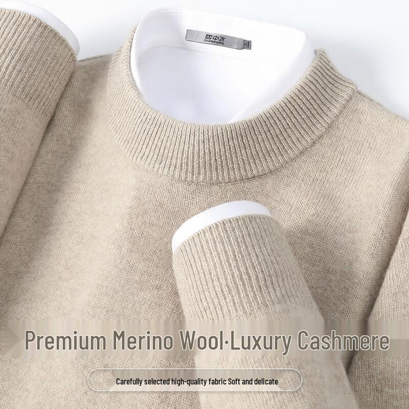 SNOWFLYING Men's Cashmere Blend Round Neck Thick Wool Sweater