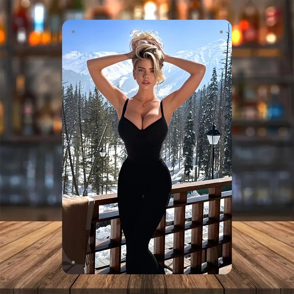 Винтажный металлический настенный декор - Постер с моделью на фоне величественных гор 12x8 дюймов, Декор для мужского бара, спальни, гостиной, офиса