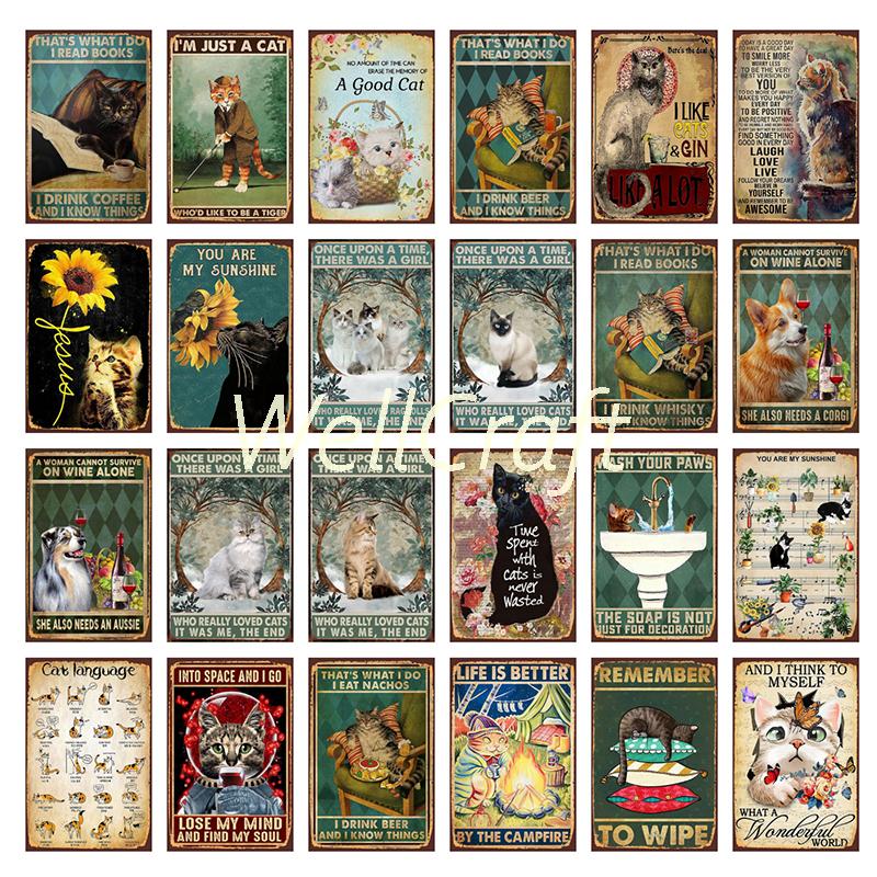 [ WellCraft ] 20*30cm You Are My Sunshine Cat Metal Poster Tin sign Vintage Wall Plaque Decor WX-62-1