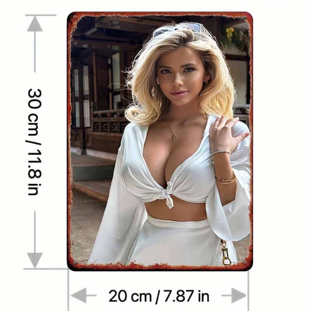 Винтажная металлическая настенная картина «Золотоволосая кудрявая дама» - Ручная работа, прочный декоративный знак для спальни, бара, гаража, сада, улицы, металлическое произведение искусства