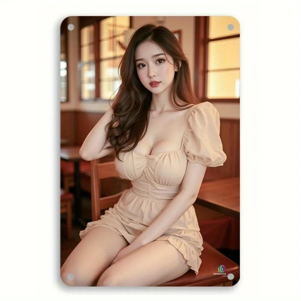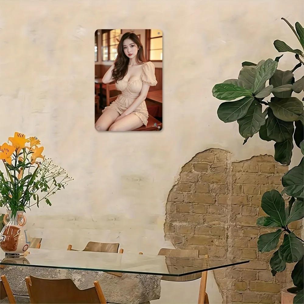 Винтажный металлический настенный декор 8x12 дюймов, Декор для дома с элегантной дамой в белом платье и коричневой шляпе