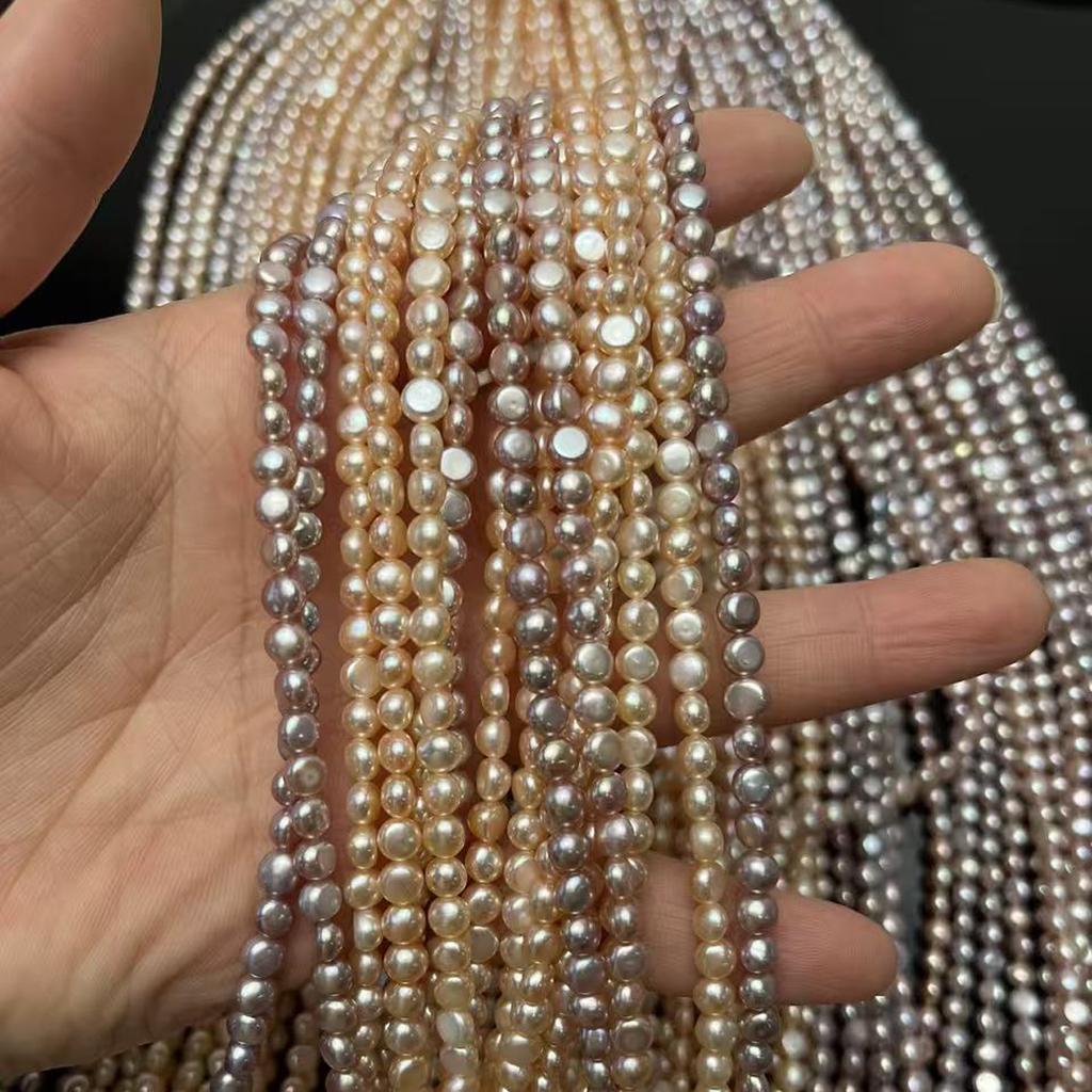 1 нить, фиолетовые, белые, розовые бусины из натурального перламутра, бохо, ручная работа, двусторонние, 4-5 мм, для изготовления украшений своими руками, бисероплетение, 36 см