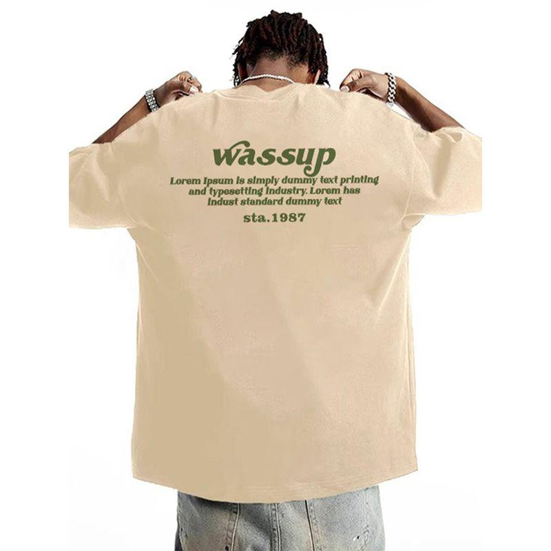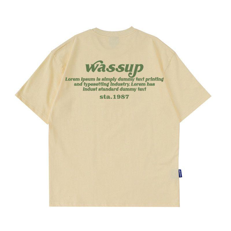 Wassup Heods American-Style Heavy Letter T-Shirt for Men, Summer 2024 New Trendy Brand, Loose Short-Sleeve for Couples