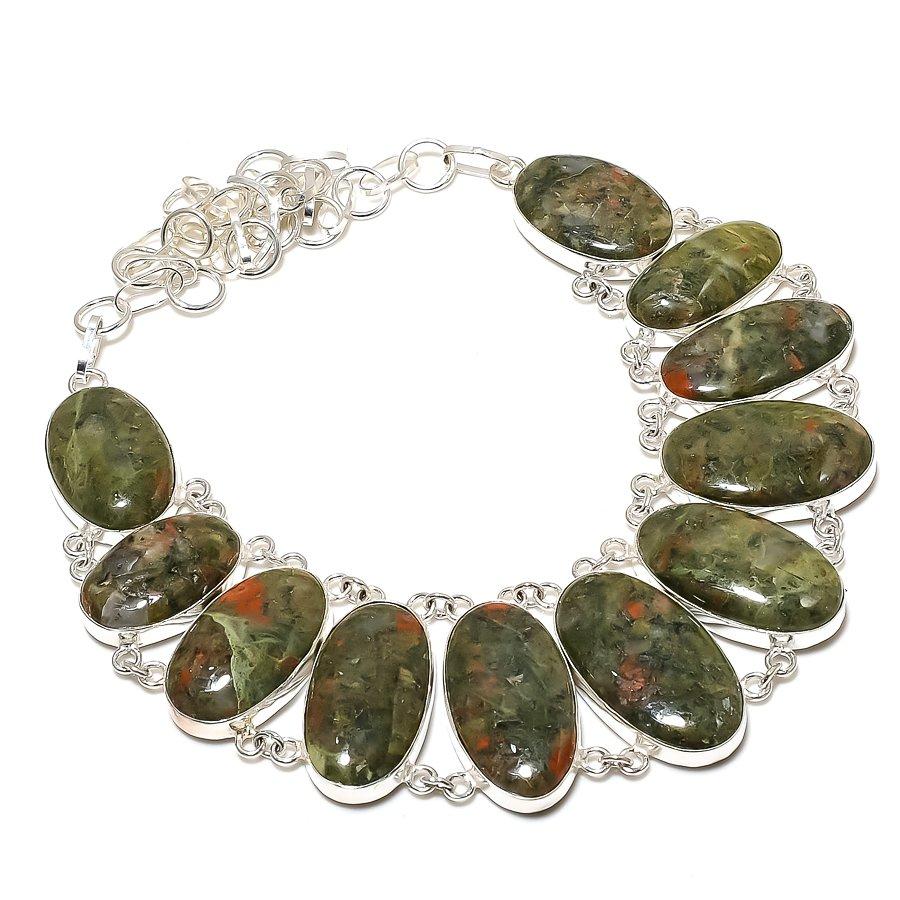Natural Unakite Gemstone Handmade 925 Sterling Silver Jewelry Necklace 18" AN-1630