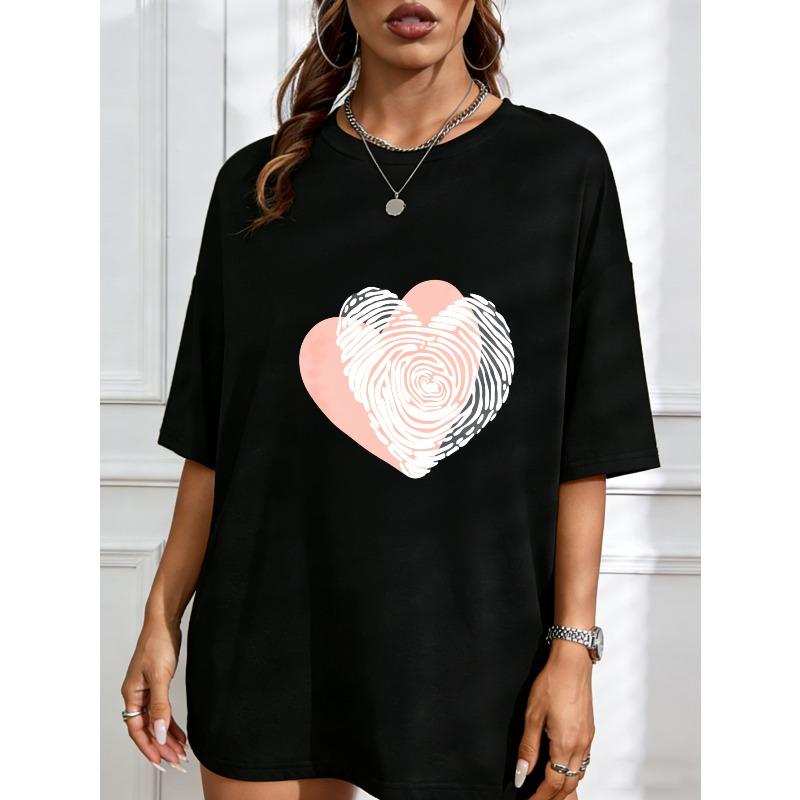 Футболка с круглым вырезом, белая, с принтом отпечатков пальцев в виде сердца, повседневная одежда для женщин