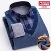 2026 new men's fleece thickened shirt autumn and winter high quality fake two business leisure warm slim fashion without ironing