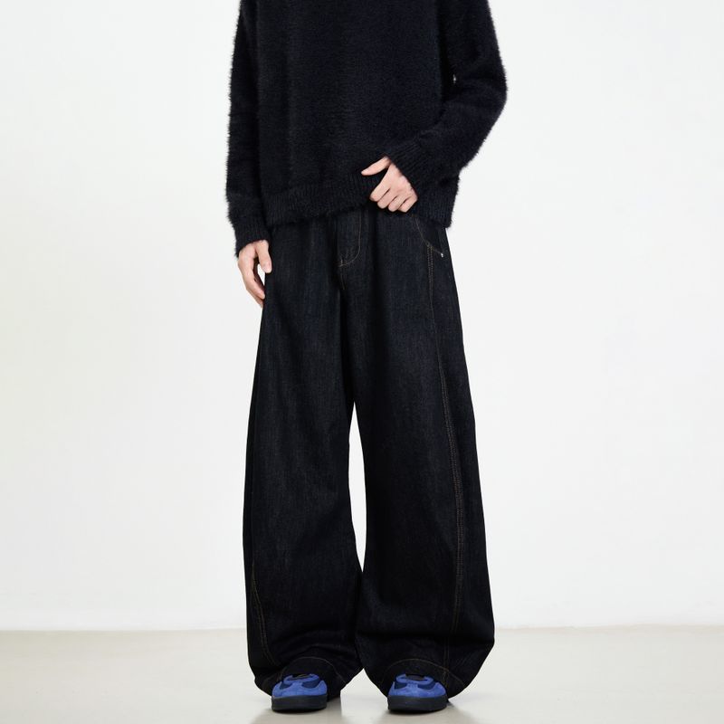 Kisko American Retro Wide Leg Profile Casual Black Matchet Pants Men and Women Straight-leg Washed Basic Denim Ins