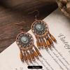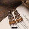 Винтажные этнические уникальные коричневые серьги для женщин, богемные необычные геометрические серьги-кисточки в виде капли воды, женские украшения