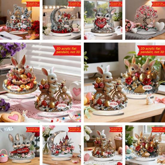 Это настольное украшение демонстрирует изысканный дизайн на тему кроликов, идеально подходящий для добавления очаровательного штриха в вашу гостиную, спальню или офис.. Изготовлено из высококачественного акрилового материала, что обеспечивает долговечность, безопасность и экологичность.