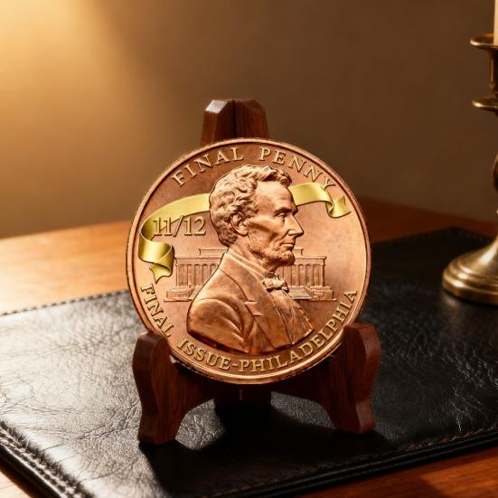 С надписью «ПОСЛЕДНИЙ ПЕННИ» сверху и «ПОСЛЕДНИЙ ВЫПУСК-ФИЛАДЕЛЬФИЯ» снизу, этот специальный выпуск отмечает последний цент, выпущенный в этой серии, что повышает его коллекционную ценность.. Вдохновляющий подарок, он служит значимым сувениром для студентов, выпускников, отцов, любителей истории или коллекционеров, ценящих богатую символику и наследие.