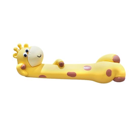 Милый мультяшный дизайн жирафа с очаровательной позой «лежа», желтым телом, коричневыми пятнами и улыбающимся выражением лица визуально привлекателен. Это универсальное украшение можно размещать в различных положениях, чтобы использовать его в качестве декорации, креативной закладки или подставки для мелких предметов..