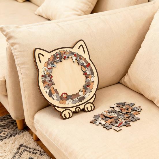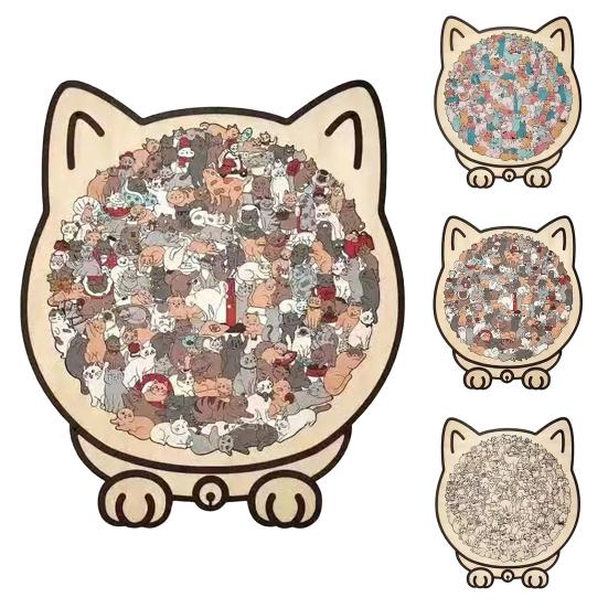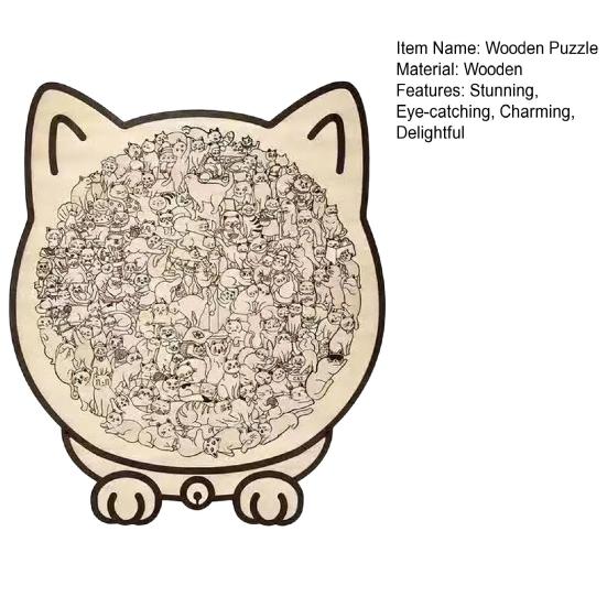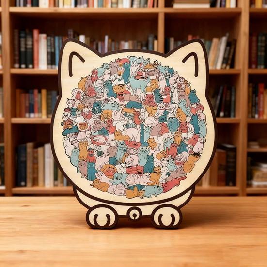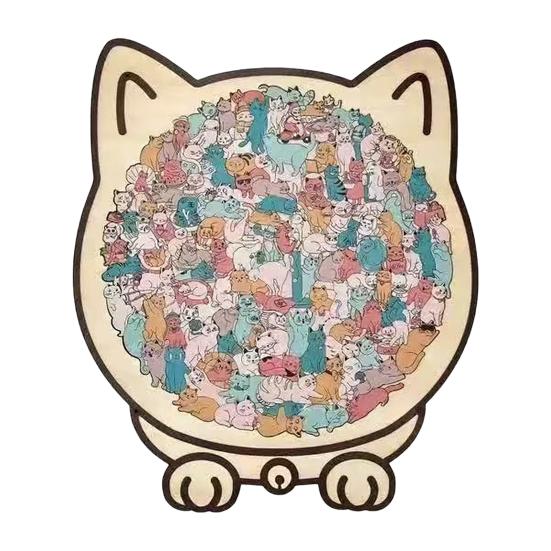 Уникальные пазлы в форме кошек: Каждый элемент этого деревянного пазла искусно вырезан в виде различных кошек, передавая игривую и живую сущность кошачьих.. Этот креативный дизайн превращает сборку пазла в увлекательное путешествие по миру кошек, делая его особенно привлекательным как для любителей пазлов, так и для любителей кошек.