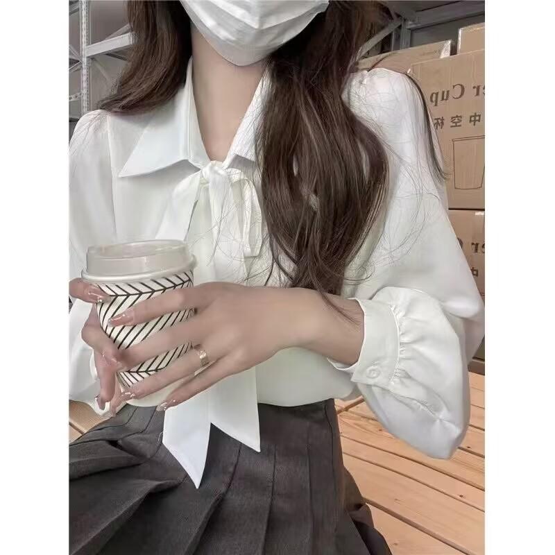 Фонарики рукав темперамент осень и зима бант рубашка белая блузка женская с длинным рукавом галстук дизайн Sense карьера топы темперамент элегантный модный топ