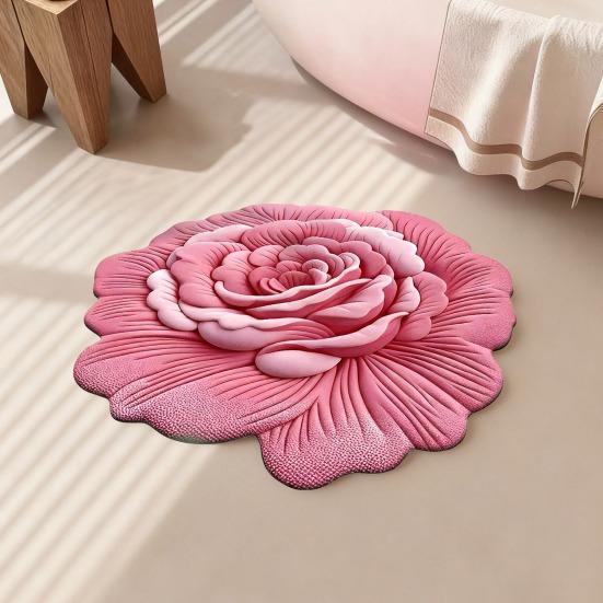 Уникальный трехмерный дизайн с цветами: Этот коврик для пола, выполненный в виде художественного 3D-цветка со слоистыми лепестками, также служит элегантным декоративным элементом.. Сложный дизайн добавляет визуальный интерес и очарование любой обстановке спальни или ванной комнаты, украшая ваш интерьер и выполняя практические функции.
