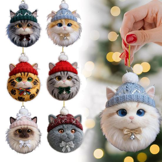 The design includes lifelike coat patterns such as gray, orange, and tabby, enhanced by delicate bows and small bells that coordinate with the hats for an elegant touch. Perfect as holiday hanging decorations, home accents, or thoughtful gifts, these adorable cat ornaments bring warmth and creativity to any festive setting, making them a favorite among pet lovers and holiday enthusiasts alike.