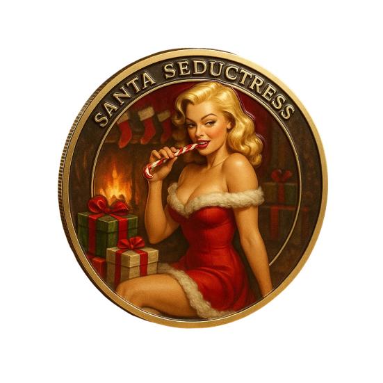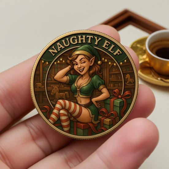 Рождественское искушение Монета в стиле пин-ап для взрослых Праздничный жетон Металлическая коллекционная монета Украшение Круглый сувенирный значок Наполнитель для чулка Подарок-прикол