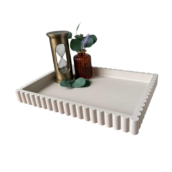 Представляем наш высококачественный поднос для хранения из смолы, прочный и декоративный предмет, подходящий для различных помещений, таких как гостиная, спальня и офис.. Рифленый дизайн добавляет современный штрих, что делает его идеальным в качестве подноса для сервировки или для хранения различных предметов, чтобы поддерживать порядок на вашем рабочем столе..