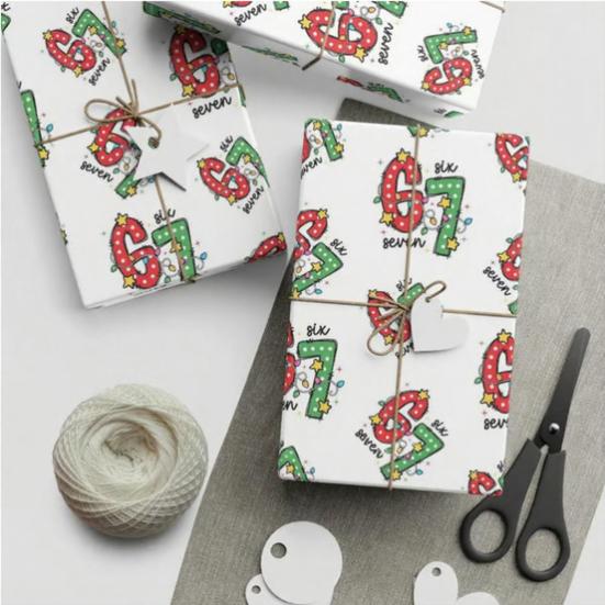 Образовательные и развлекательные элементы: Эта оберточная бумага, содержащая английские слова «six» и «seven» над цифрами, сочетает в себе креативность и образование.. Идеально для детских или творческих вечеринок, добавляет увлекательный штрих к вашим подаркам.