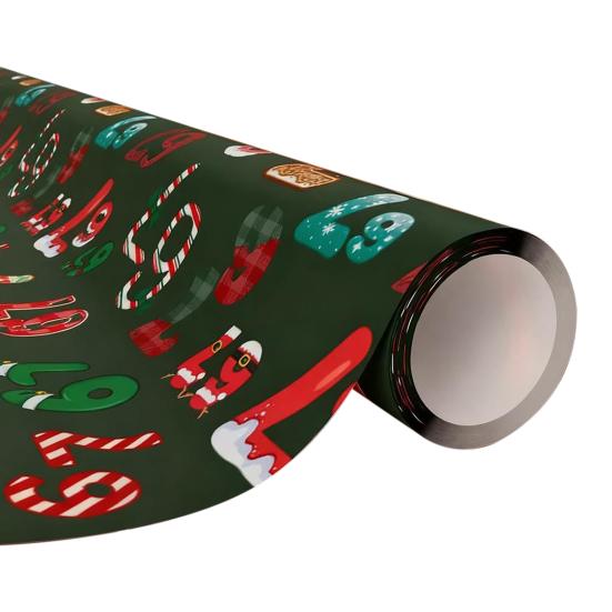 Сделайте ваши подарки ярче с нашей яркой подарочной упаковочной бумагой! Этот привлекательный бумажный декор, выполненный в классической рождественской цветовой гамме из трех ярких цветов, идеально подходит для праздничного сезона.. Дизайн включает в себя забавные и образовательные элементы, такие как английские слова над цифрами «6» и «7», что делает его подходящим для детей и творческих вечеринок.. Эта упаковочная бумага с праздничными зелеными цифрами, красными рождественскими шапками и мотивами зеленых сосен излучает сильное праздничное настроение..