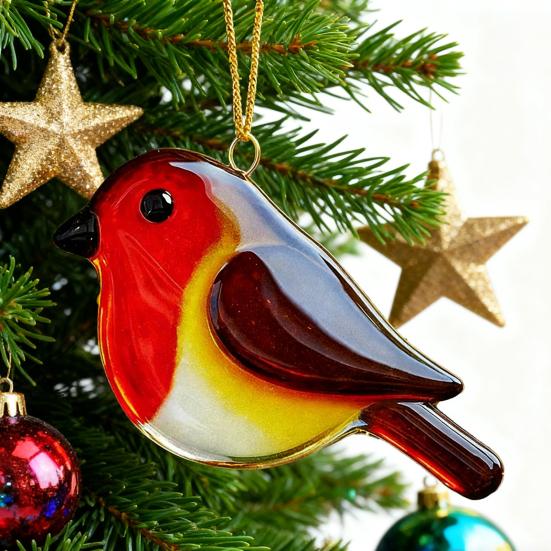Яркое цветовое соответствие: Окунитесь в дух Рождества с классическими цветами, которые излучают тепло и энтузиазм.. Замысловатые черные детали вокруг глаз и клюва добавляют глубину и контраст, повышая общую эстетическую привлекательность этих украшений и выделяя их в любой праздничной обстановке.