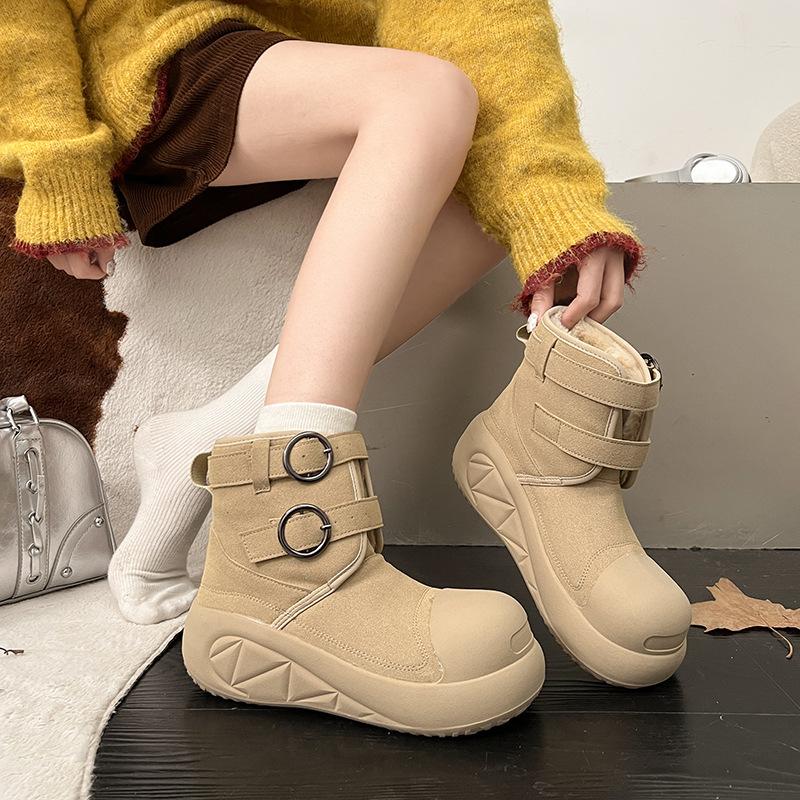 Women's fur one thick bottom heightening winter lightweight warm snow boots non-slip wear-resistant casual sports cotton shoes