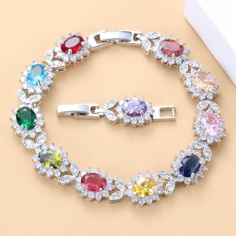 12-цветные цветочные украшения Красочный циркон Элегантные женские модные аксессуары Шарм-браслет Браслет Регулируемая длина