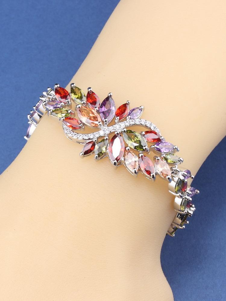 Роскошный итальянский браслет-шарм Цветные цирконы Изящные ювелирные изделия Женские/Девичьи Модные аксессуары к платью Для вас Подарок