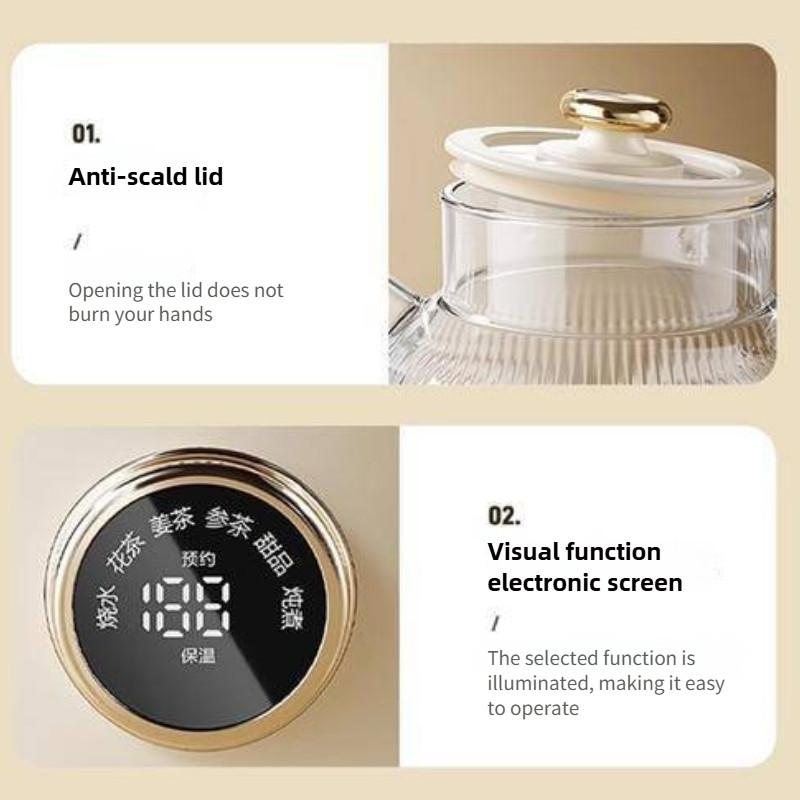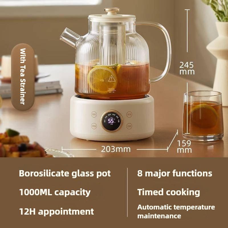 1 л Полностью стеклянный раздельный чайник для здоровья Многофункциональный электрический чайник Бытовая бутылка для горячей воды Кастрюля для тушения Маленький офисный чайник