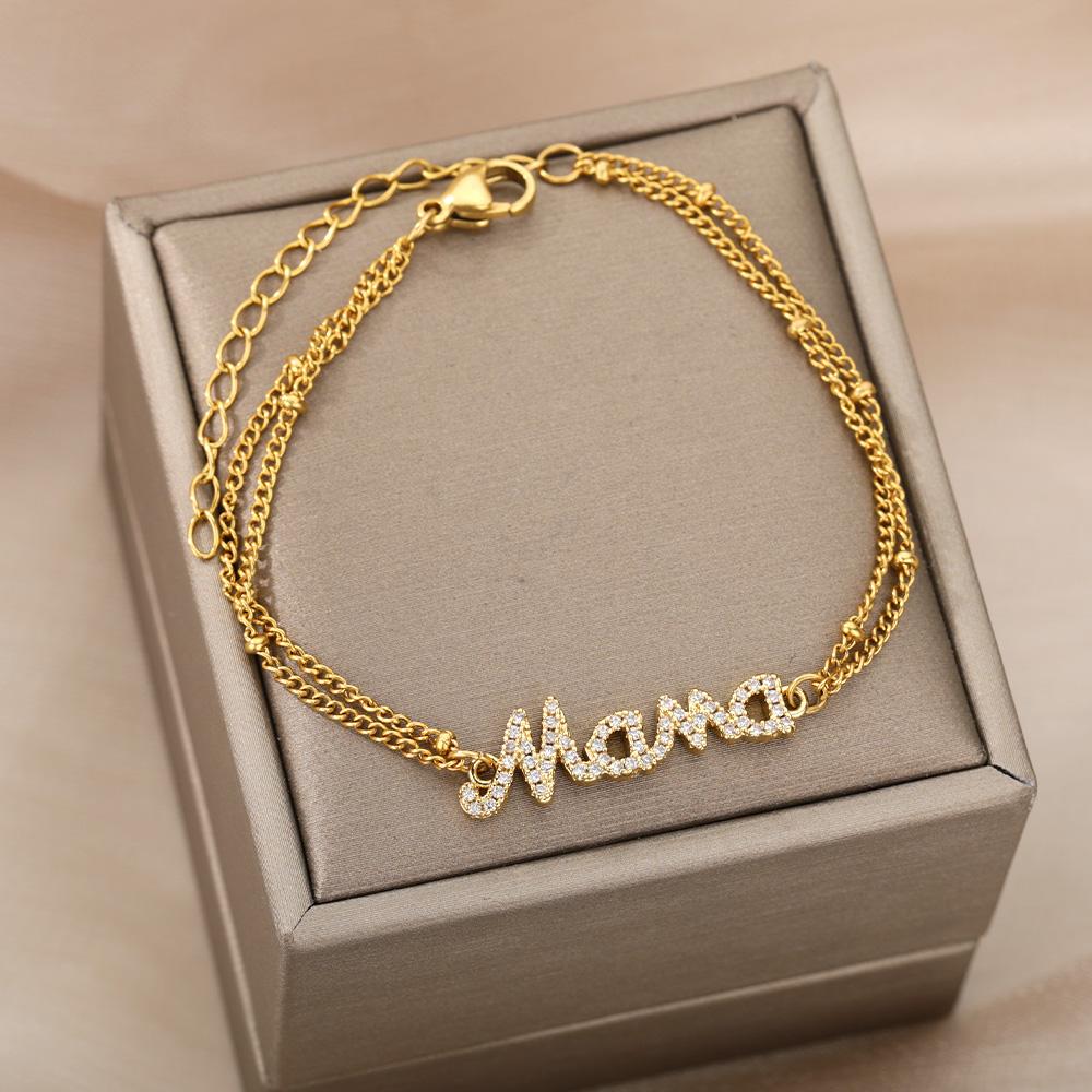 Циркониевые браслеты с надписью "Мама" для женщин, из нержавеющей стали, с двойной бисерной цепочкой, браслет "Семейная любовь", женское украшение, подарок для мамы