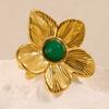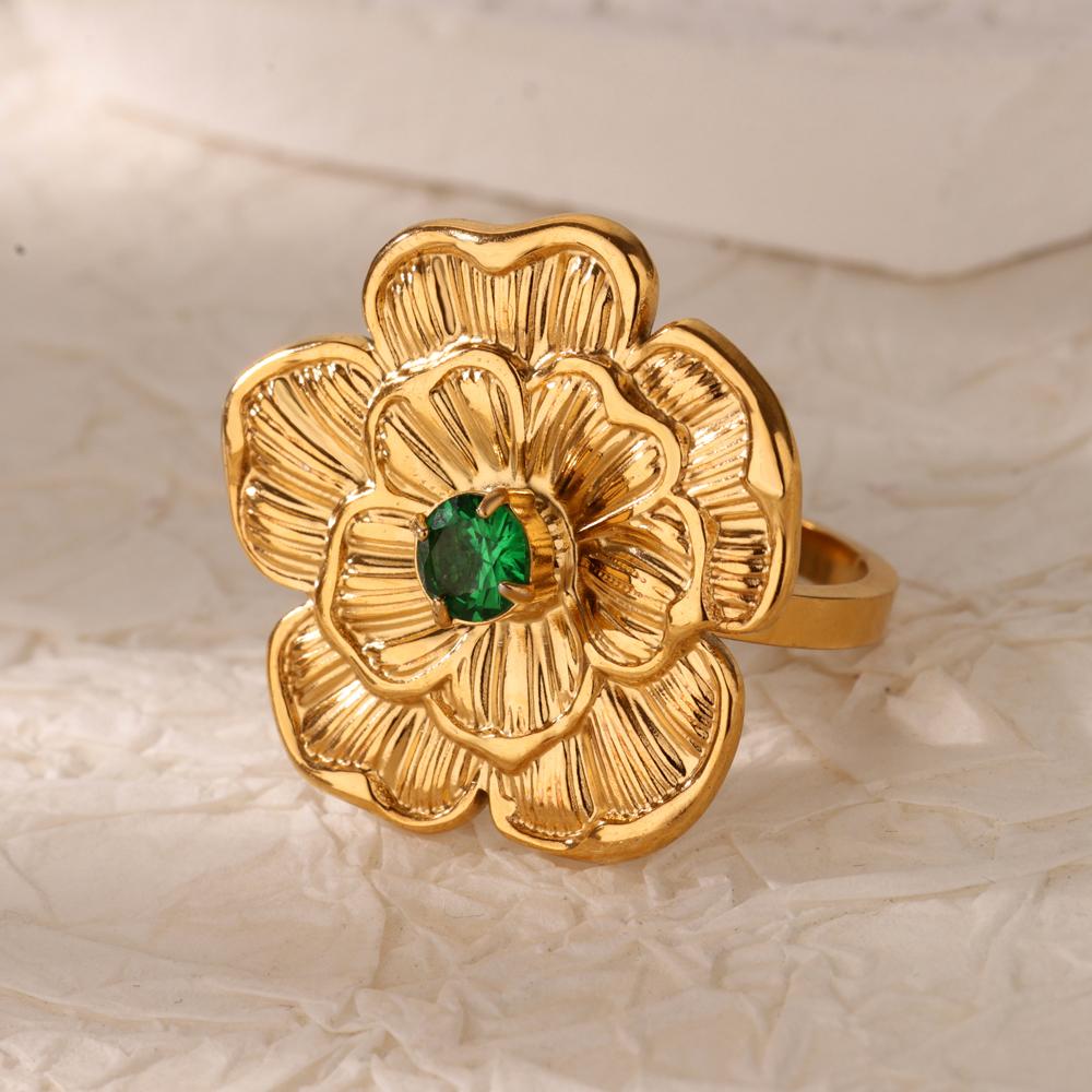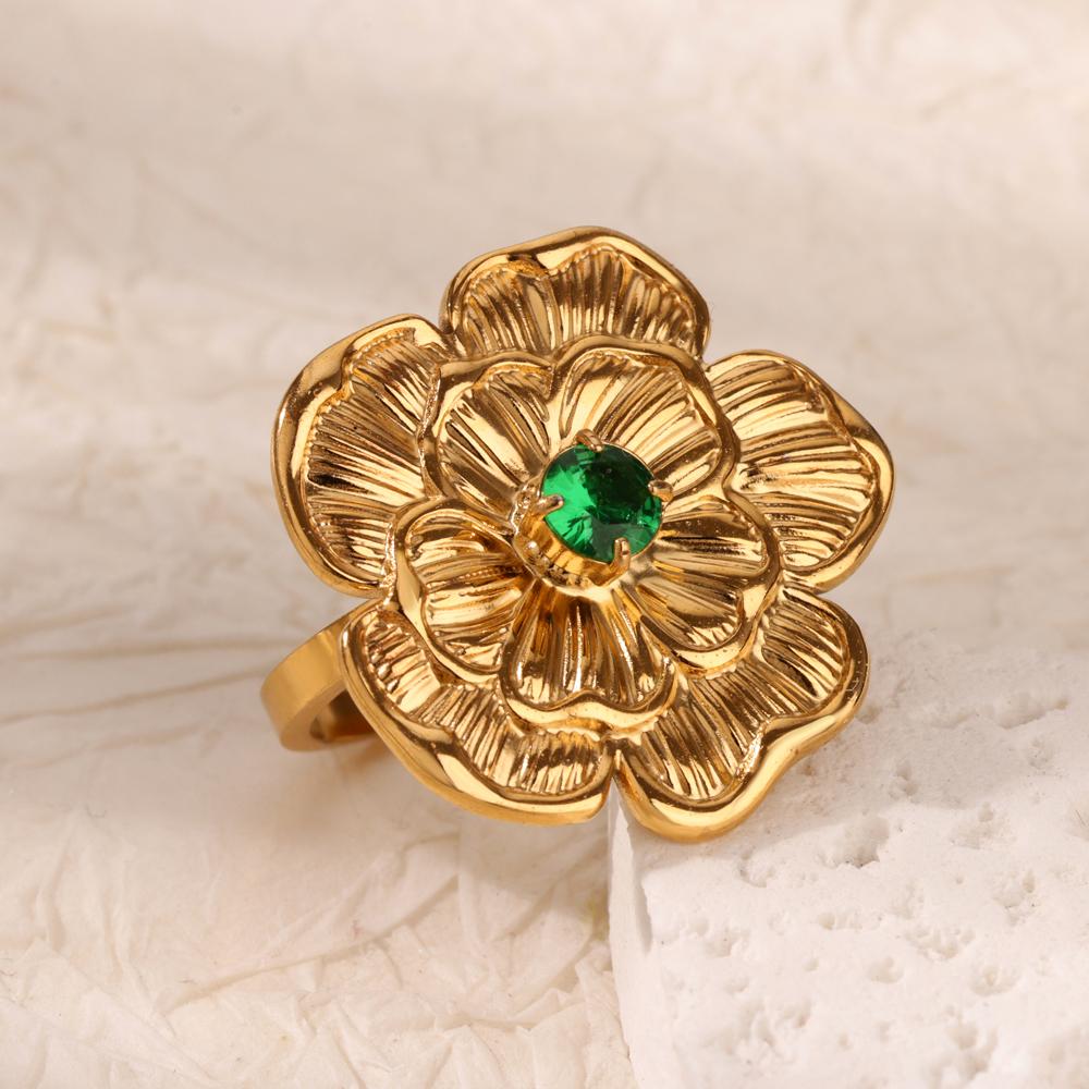 Кольца из нержавеющей стали с цветком и зеленым цирконом, открытые, для женщин, золотистого цвета, кольцо с цветком, женская модная вечеринка, свадебные украшения, подарок для лучшей подруги