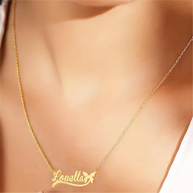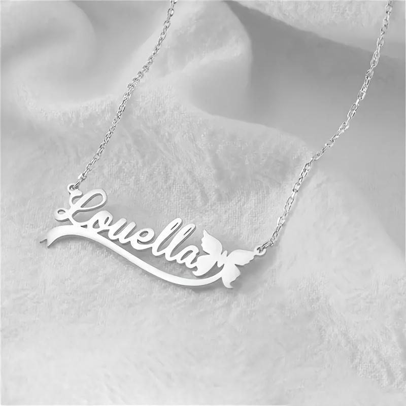 Персонализированное ожерелье-подвеска с именем на заказ с лентой-бабочкой, цепочка из нержавеющей стали, ювелирное изделие на заказ, подарок на день рождения, годовщину
