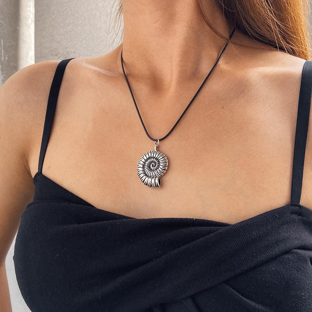 Goth Black Leather Wax Thread Chain With Tiny Conch Pendant Necklace For Women Simple Shell Snail Choker Y2K Vacation Jewelry — купить товар онлайн с бесплатной доставкой по всему миру!
