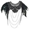Эполеты с перьями Наплечная накидка Кружевной чокер Костюм для косплея на Хэллоуин Готический кожаный ремень с перьями Цепочка на тело для женщин
