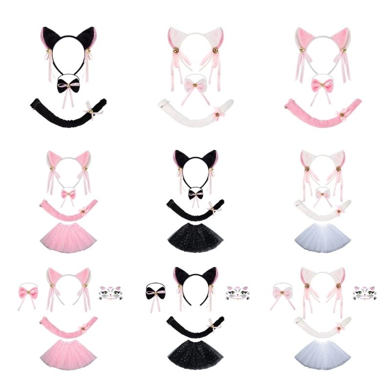 Набор костюма кошки, этот набор костюма кошки 1 штука ободок с кошачьими ушками, 1 штука галстук-бабочка, 1 штука кошачий хвост, 1 штука юбка-пачка, 1 лист наклеек для лица, красивые аксессуары для маскарадного костюма кошки, чтобы удовлетворить потребности ваших детей в косплее, различный выбор включает разные вещи, пожалуйста, подтвердите вашу потребность перед заказом.